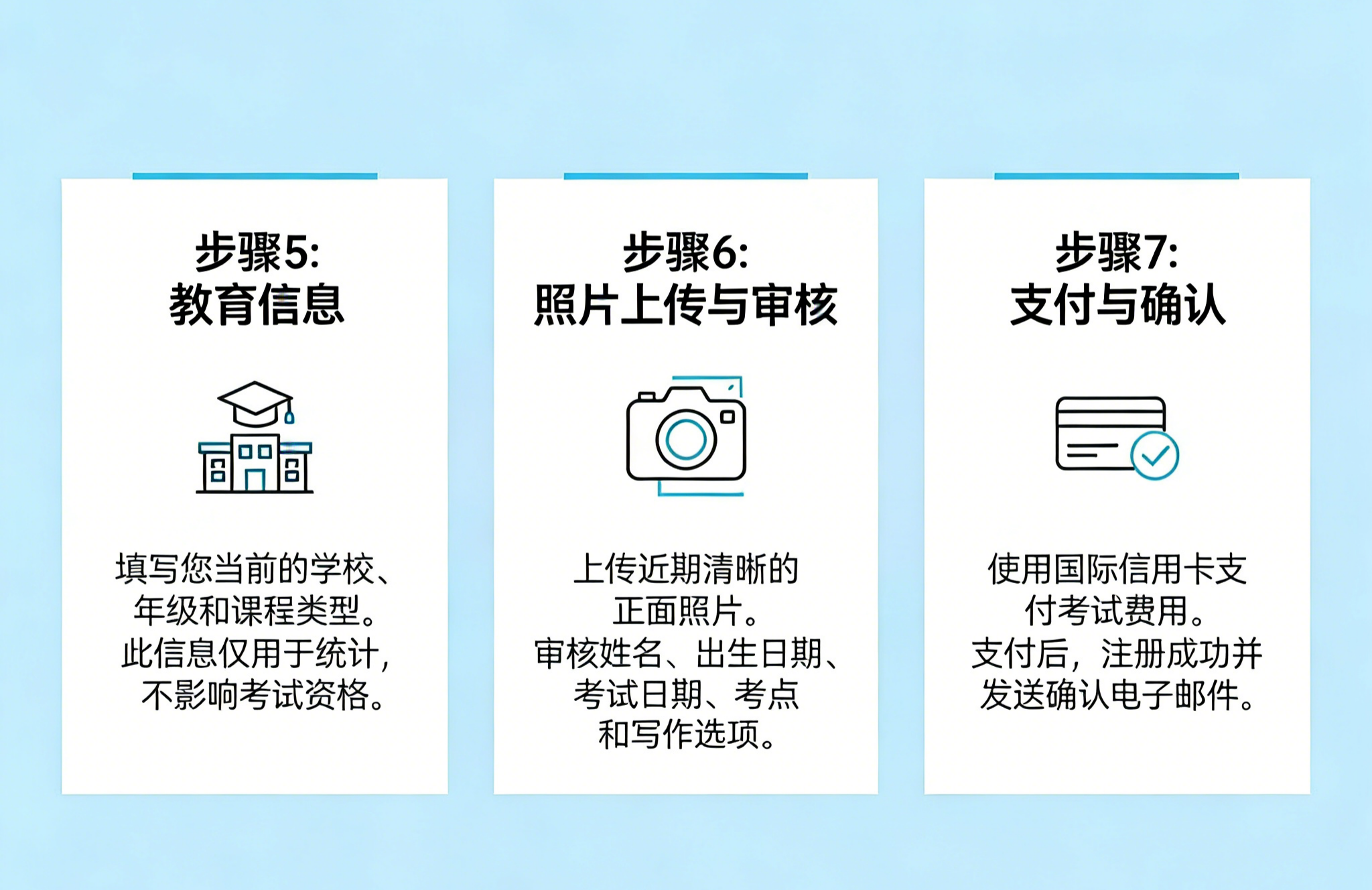 照片需清晰、正面、无遮挡,报名过程中会上传,用于考试当天身份核验。不合规照片可能被系统拒绝,影响报名进度。