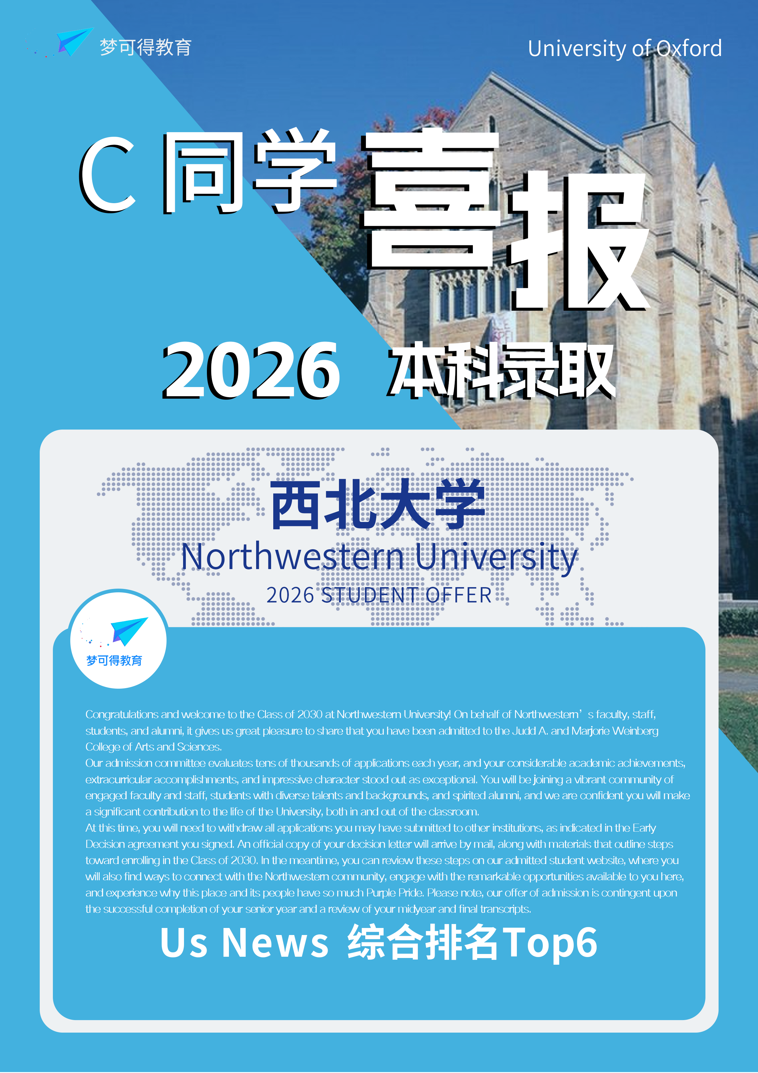 回头看这条路,我很清楚,如果没有梦可得从最初规划到每一步细节的陪伴,我很难如此坚定地走到终点。他们不是替我做选择,而是在关键节点不断帮我确认:我是谁,我适合什么,我真正想去哪里。这封录取信不仅是一所大学的肯定,更是一次成长被完整看见的结果。