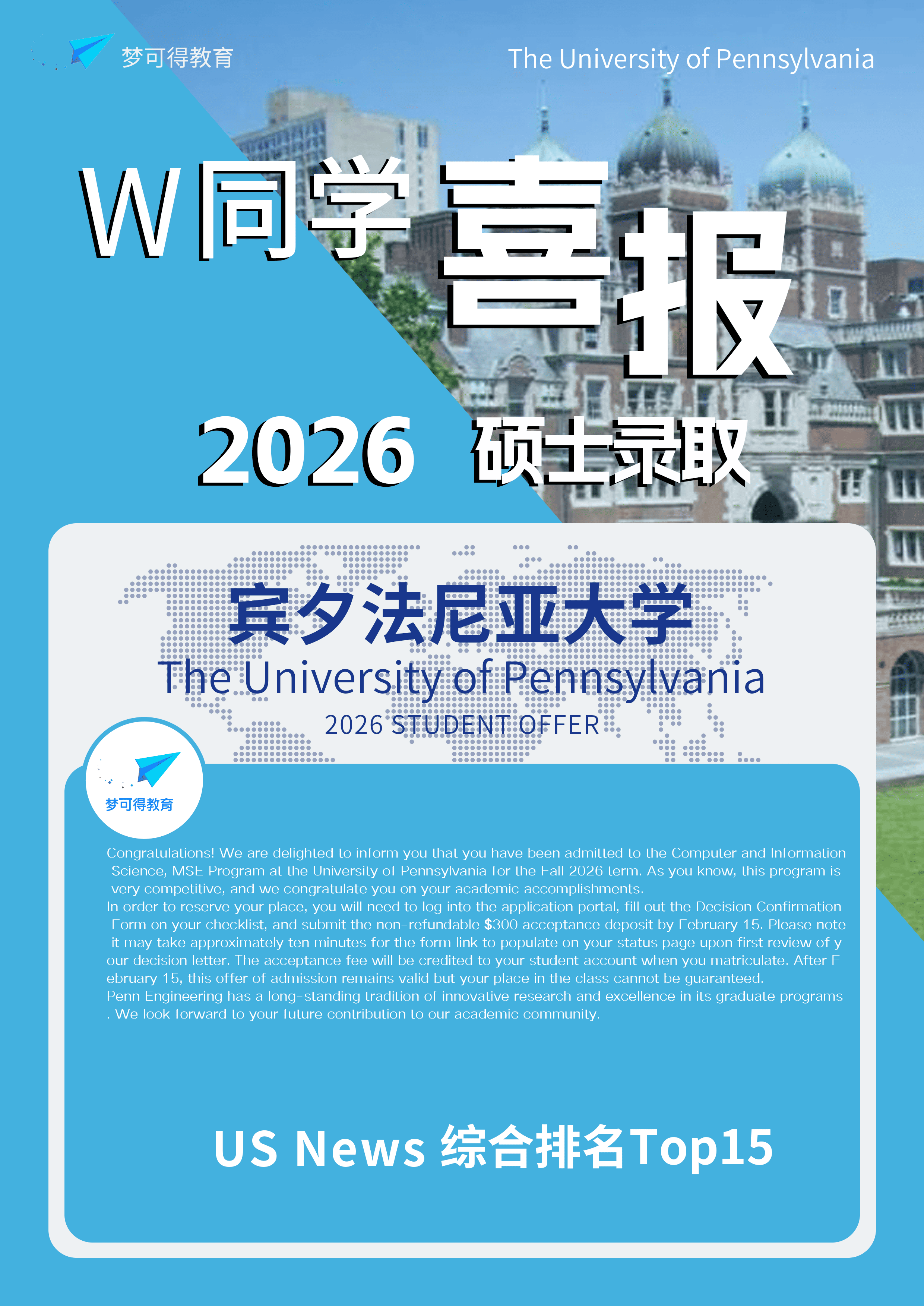 【美国硕士案例】复试止步、错过春招,buff叠满的他却靠梦可得翻盘上岸宾大