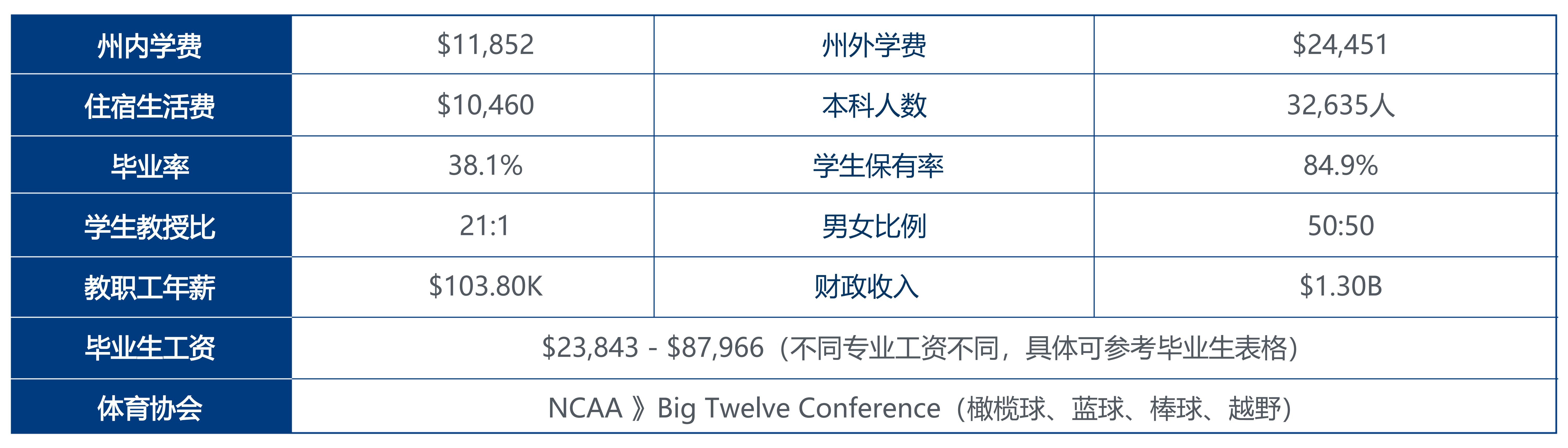 最后,值得注意的是,学生与教师比率在2021年降至19,这表明学校或许在增加师资力量,从而提升教学质量和学生体验。综合来看,德克萨斯理工大学在学费上涨的背景下,仍在努力提升教育质量和学生的留存率,显示出其在高等教育领域的持续发展潜力。